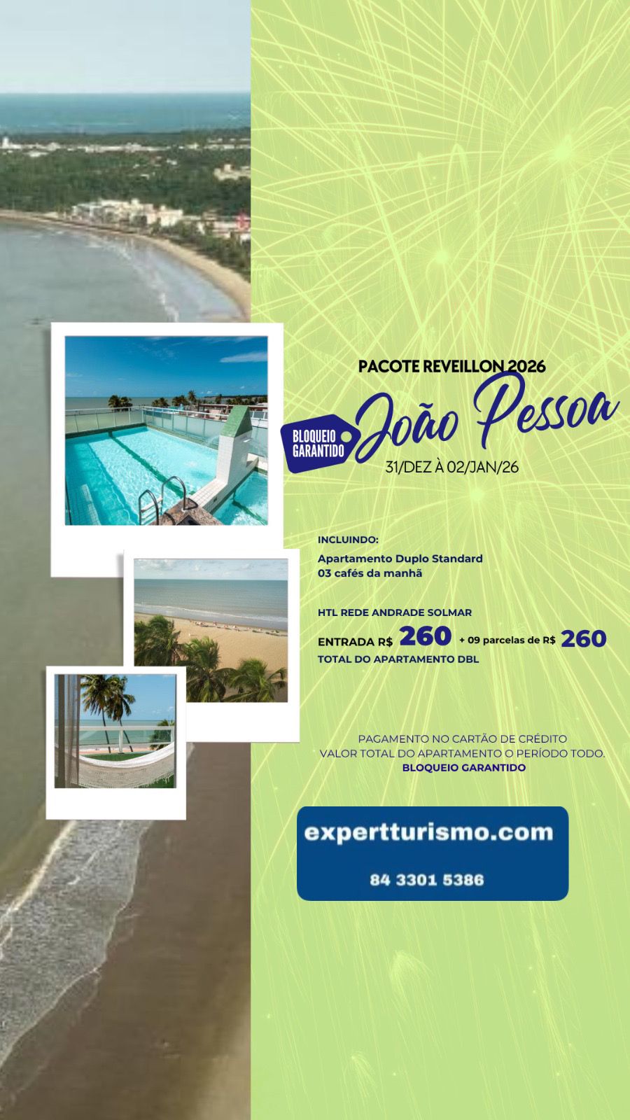 Valor total do apartamento para o período (31/12 a 03/01)