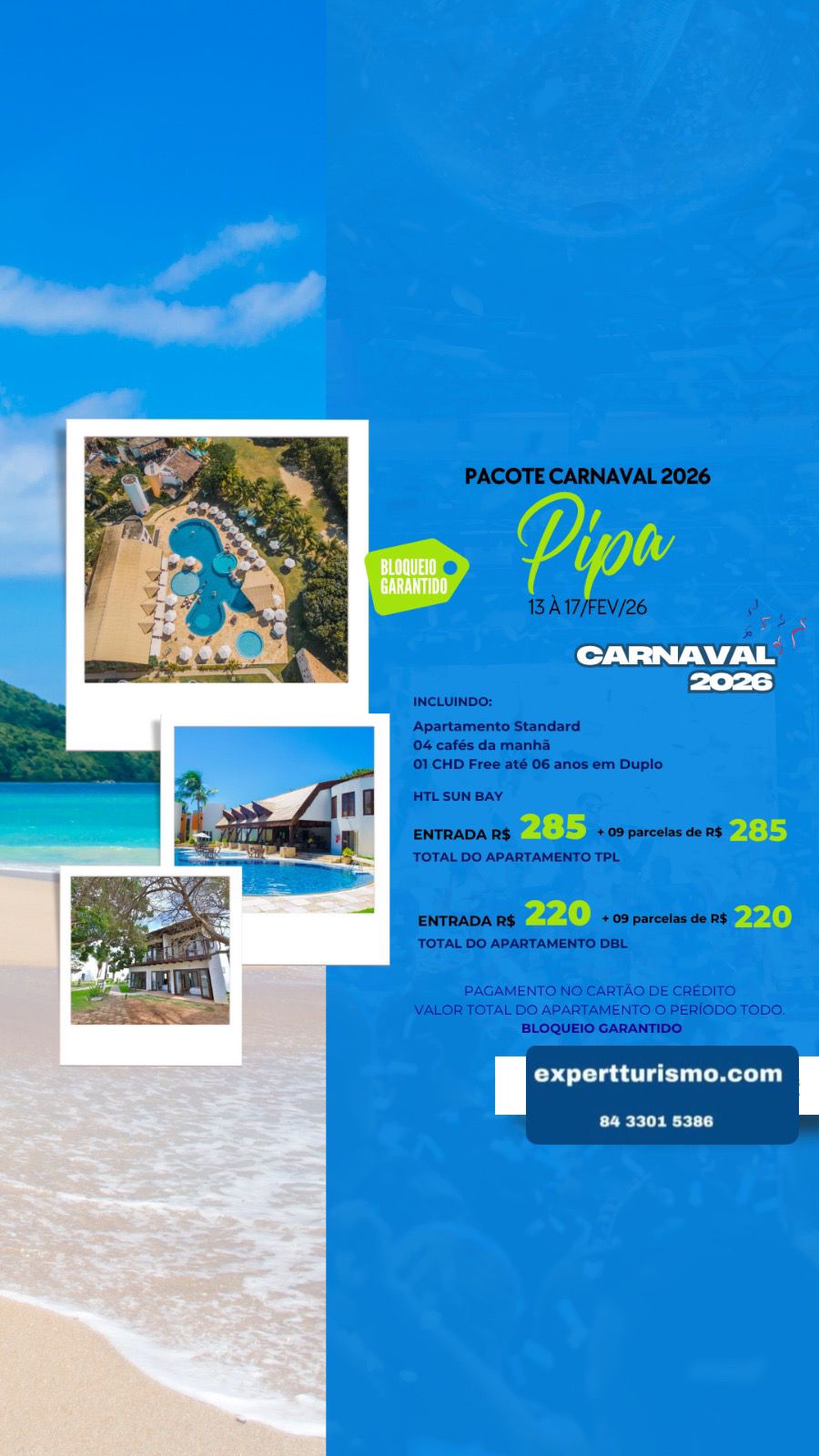 01 criança (CHD) free até 6 anos (em Duplo)